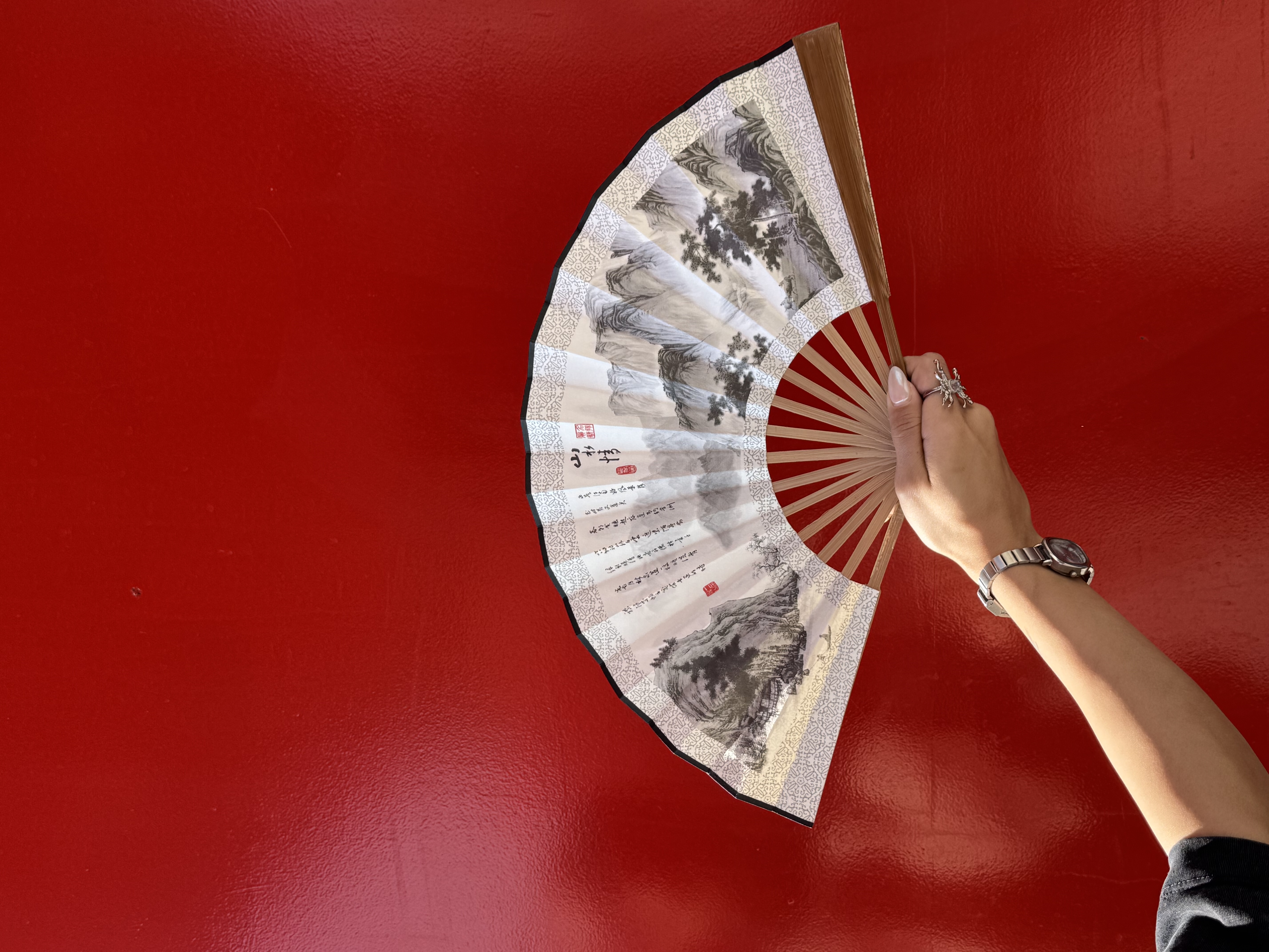 بادبزن دستی طرح ژاپنی چوبی سایز بزرگ